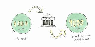 Consider an economy where banks maintain 10% reserve ratios. A person with $100 deposits the money with bank A. Bank A then lends $90 to another person, who then deposits it in Bank B. Bank B lends 0.9 x $90 = $81 to a person who deposits it in Bank C. Total money created in the economy can be computed to be: